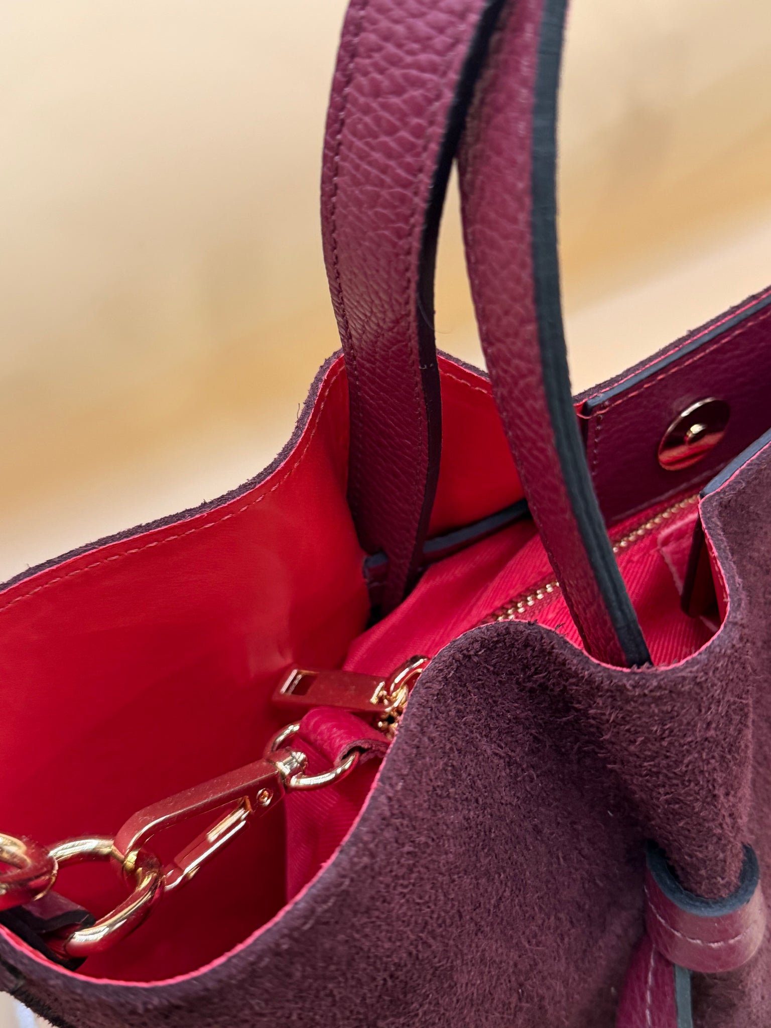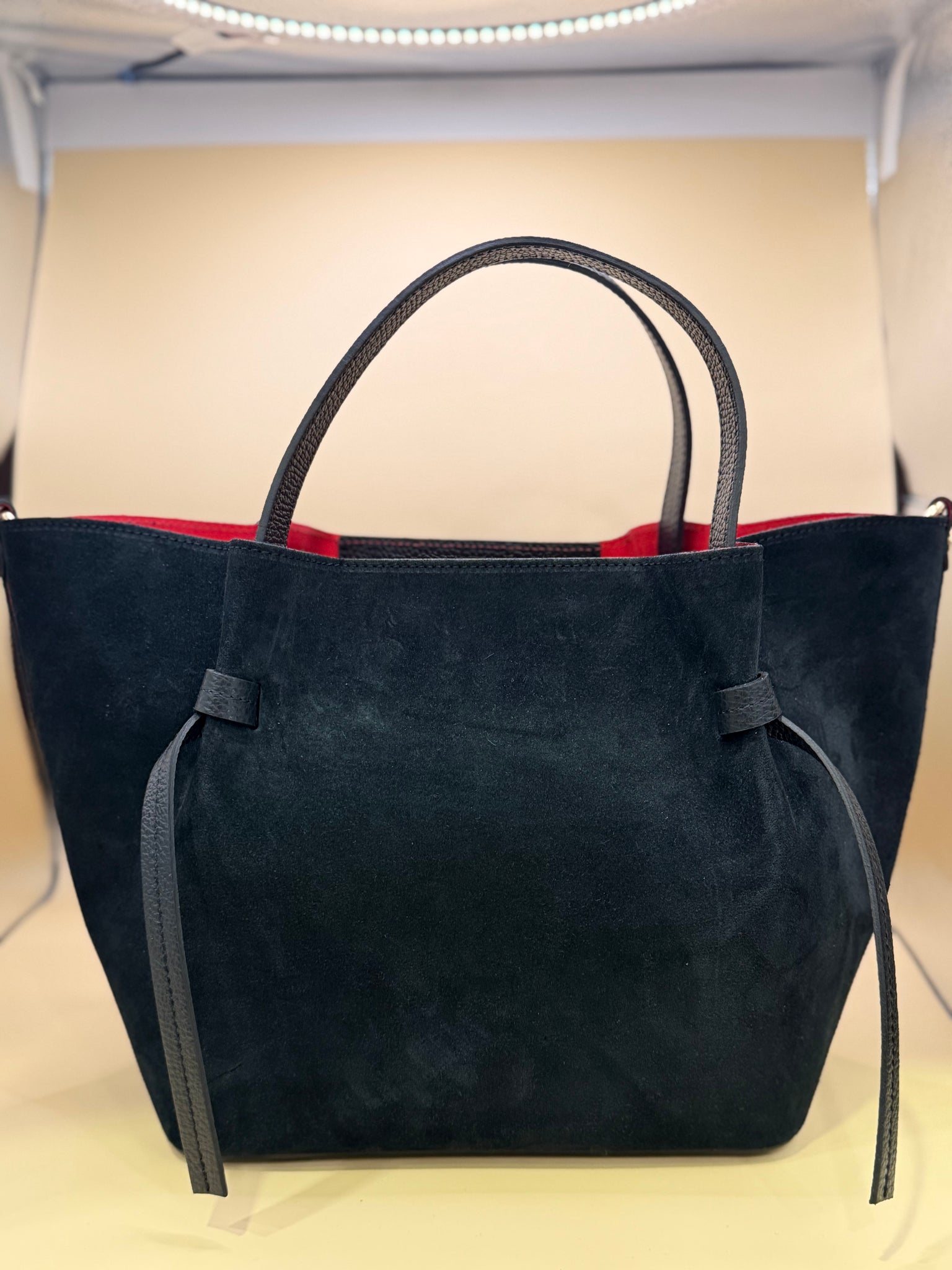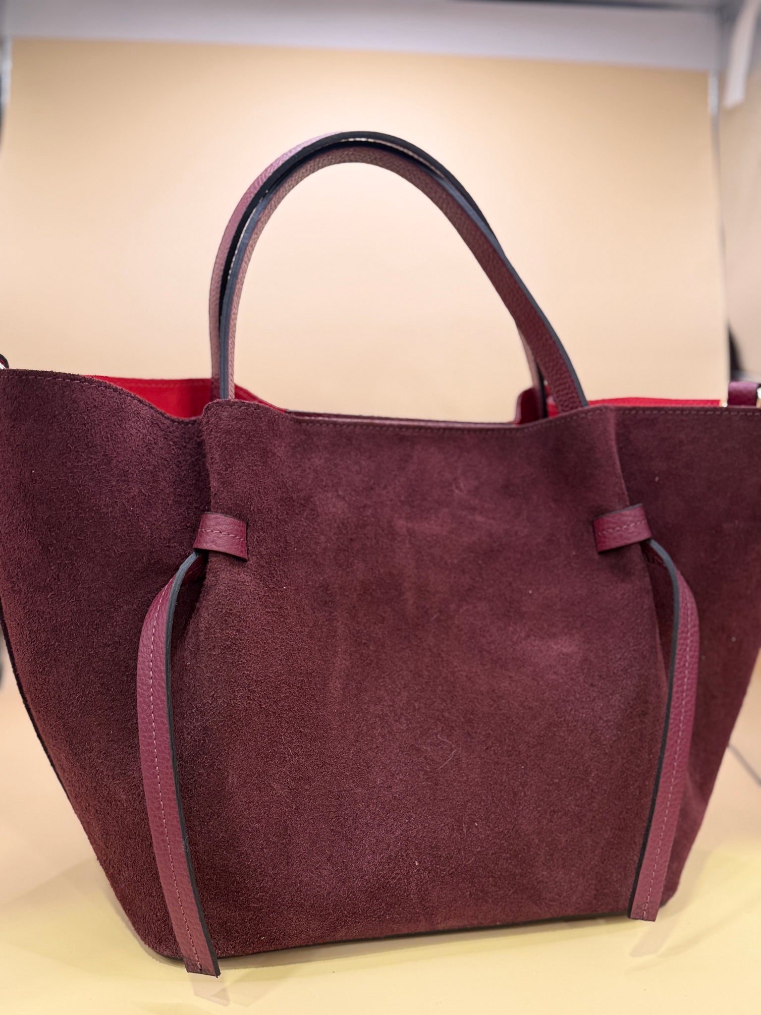 Borsa Pelle Camoscio Maxi Bag Con Interni Rossi