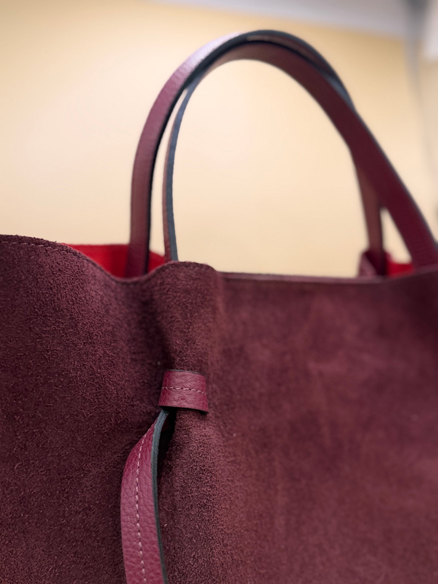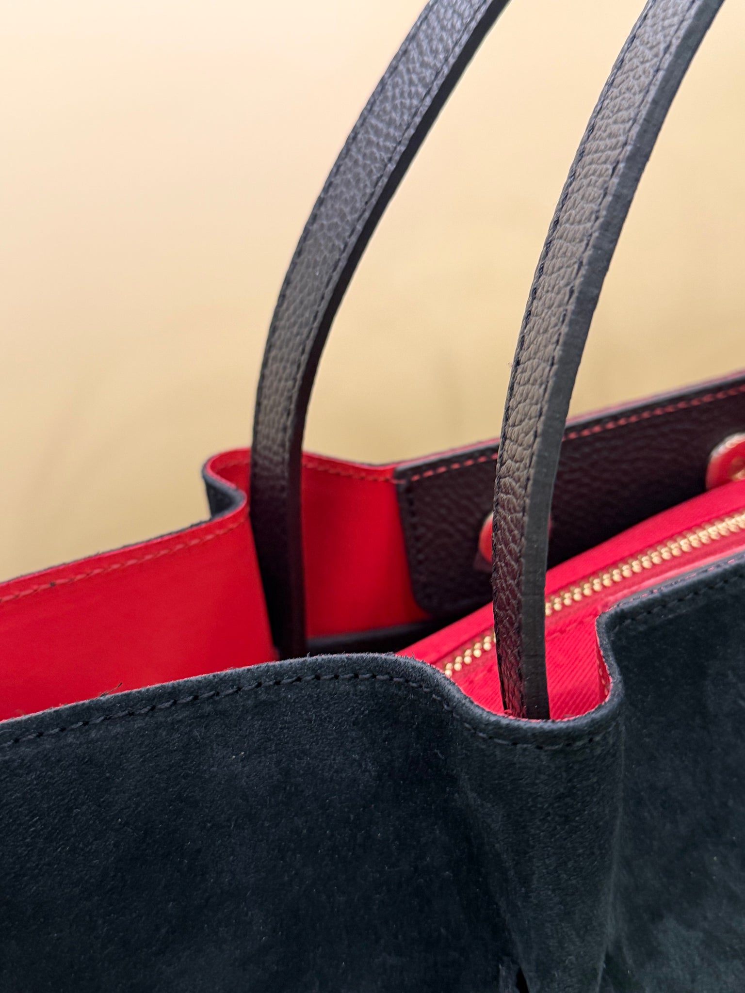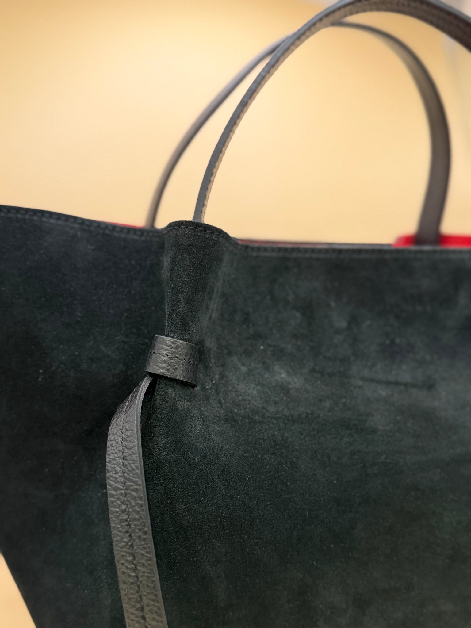 Borsa Pelle Camoscio Maxi Bag Con Interni Rossi