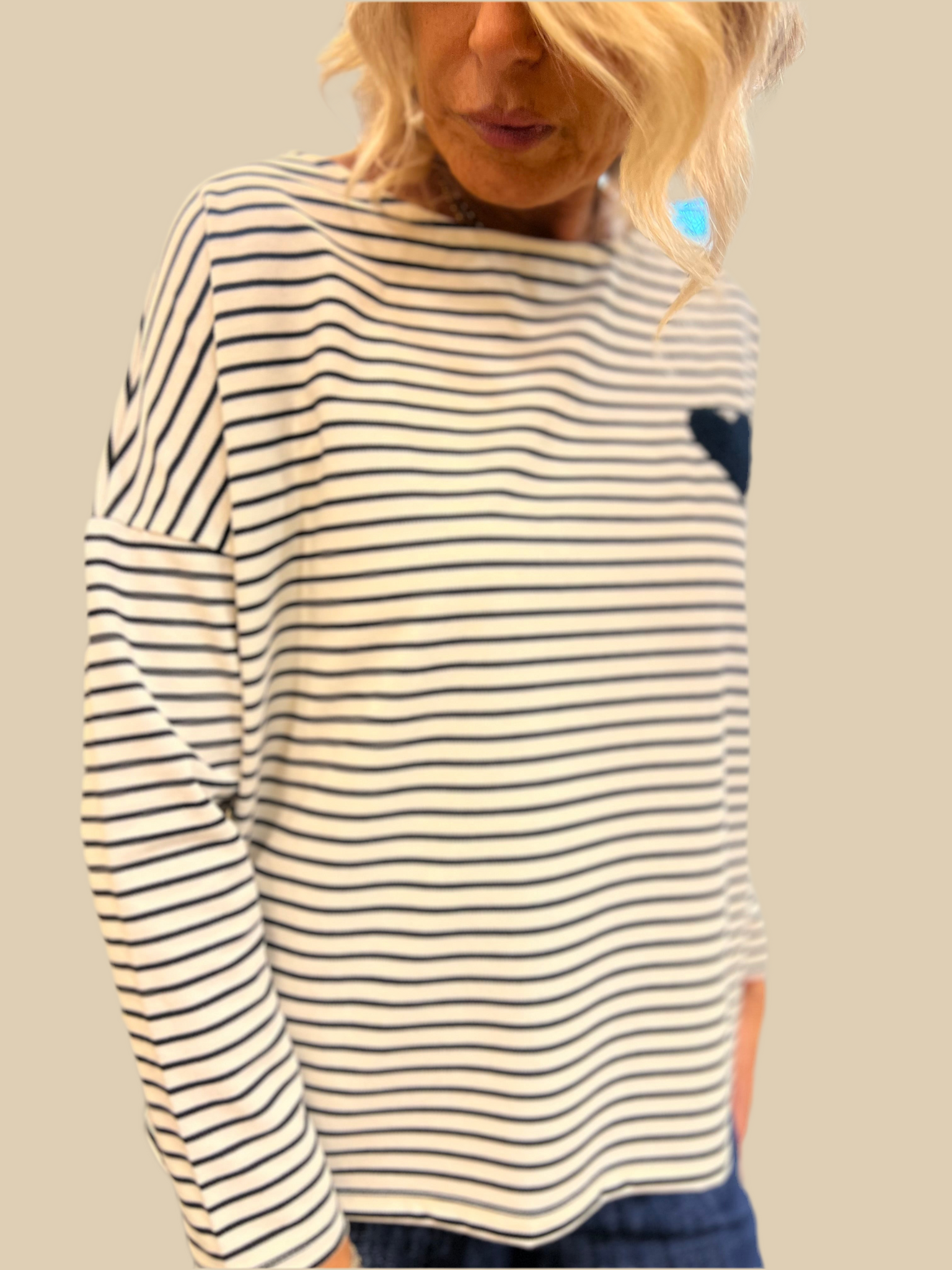 T-shirt rigata con cuore ricamato